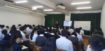 10月12日(木)3年生は進路学活を行いました。今年度の変更点や入試方法など、入試に役立つ情報を説明しました。進路決定に向けて参考になればと思います。