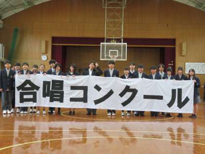 今年度は4年ぶりに全校そろって合唱コンクールを実施することができました。何か記念になるものをと文化委員会で考え、合唱コンクールの際に舞台に飾る横断幕を三学年で協力して作成しました。3年生はもう卒業ですが、後輩たちへのエールの気持ちを込めて作成したそうです。来年度の合唱コンクールでお披露目します。お楽しみに‼
