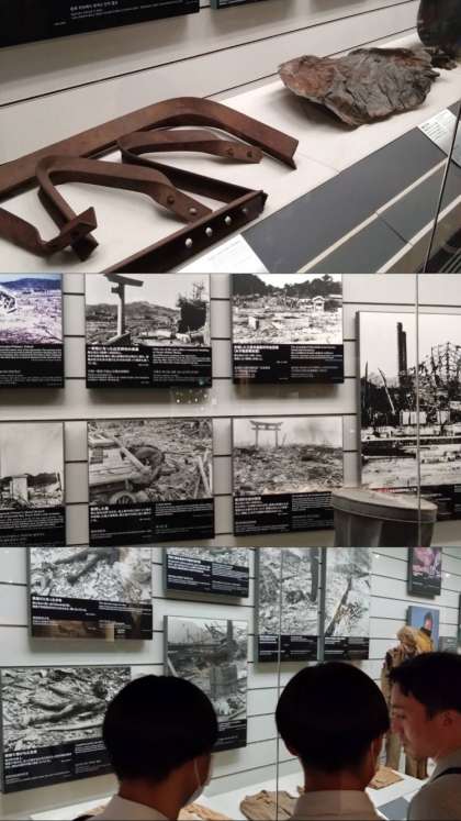 原爆資料館の見学をしています。平和の大切さを身にしみて感じています。
