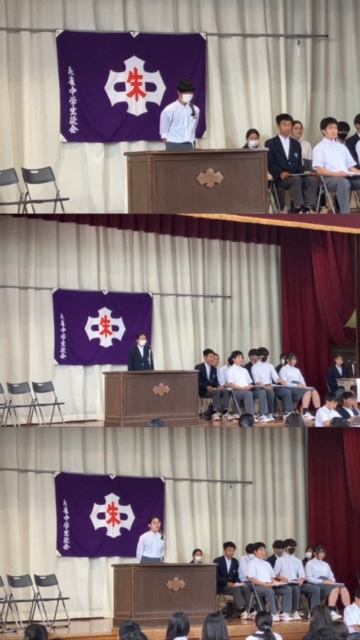 生徒総会その3です。第3号議案第4、5、6号議案と進み、学校長のお言葉で閉会しました。