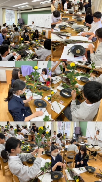 11月1日(金)1年生が華道体験を行っています。3・4時間目が1・3組の人たちが体験を行いました。初めて行う人も多く、楽しみながら花を活けていました。午後からは1・2組の人たちが体験します。