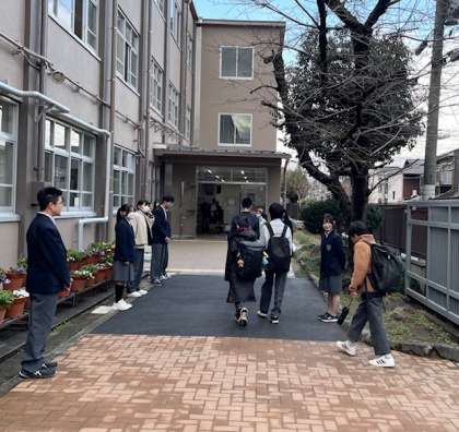3月17日(月)朝のあいさつの様子です。本日は生徒会本部の人たちがあいさつをしてくれています。3年生がいないのでさみしく感じます。しかし本部の人たちが元気いっぱい大きな声掛けをしてくれています。いつもありがとうございます。