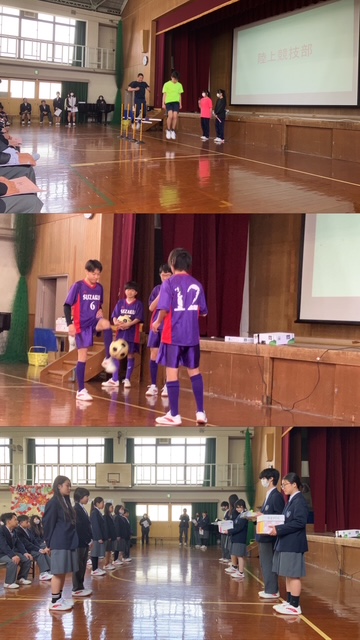 4月15日(火)生徒会から1年生にプレゼントを渡し、お礼の言葉を一年生の代表の人が伝えてくれました。とても温かい雰囲気の歓迎会ができました。朱雀愛溢れる行事となりました。