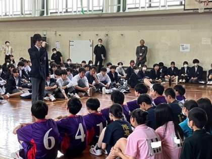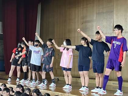 激励会の様子です。朱雀中学校の代表として競技の面では力を出し切ってください。また、スポーツマンシップやマナー面でもすばらしい朱雀中学校を見せてくれることを期待しています。