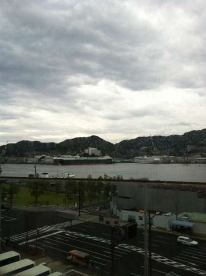 長崎駅のバスターミナルから長崎港を望んだ写真と,長崎名物「眼鏡橋チリンチリンアイス」を求めて殺到している様子が届きました。小さい頃よく買ってもらって食べたなあ… (あ,川口のひとり言でした)