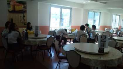 早い班はすでに集合場所に着いているようです。ちょっと疲れたかな。テーブルで突っ伏している生徒も見えます。買い物を楽しんでいる様子も届きました。この後はバスで佐賀県武雄市のホテルに向かいます。