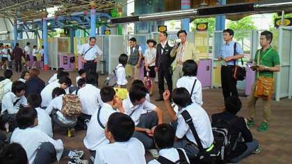 全員,約束の集合時間内に集合しました。予定通り14:30にスペースワールドを出発します。