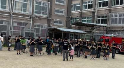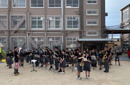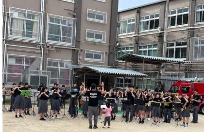 9月13日(土)朱雀中学校のグランドで朱五まつりが行われました。オープニングでは吹奏楽部の演奏を地域の方に聞いていただき華やかな雰囲気でおまつりが始まりました。