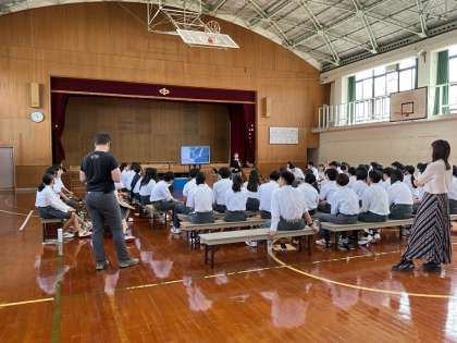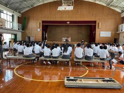 10月8日(水)学年合唱で歌う「群青」についてこの歌が生まれた経緯や歌詞に込められた思いなどを全体で学びました。説明を受けた後の合唱練習では今まで以上の団結した様子と思いが込められた歌声に代わっていました。
