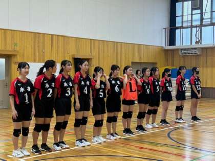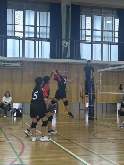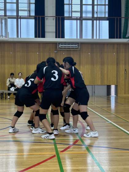 女子バレーボール部の大会の様子です。予選を3位で通過し決勝トーナメントに進んでいます。1試合でも多く試合をして経験を積んで成長できる大会にしてほしいです。