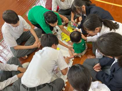 10月15日(水)家庭科の授業で幼児とのふれあい体験を行いました。2年1・2組の様子です。赤ちゃんや幼児の特性やどんなことに興味を示したり、抱っこの仕方など、いろいろなことを教えていただきました。とても楽しそうに参加していて「かわいい〜。」が連発していました。