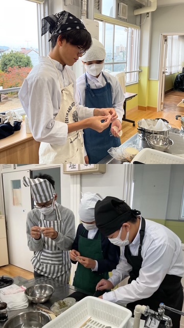 11月13日(木)2年生1・3組で家庭科の授業、調理実習を行っています。餃子作りにいどんでいます。今回の授業で学んだことを利用して家の人に料理を作ってみてはいかがでしょうか。