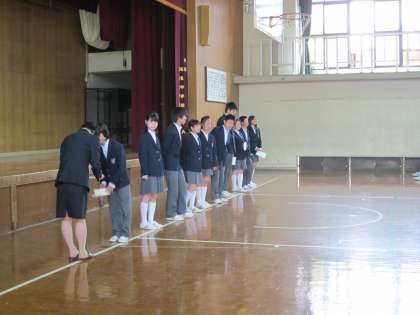 6限に前期各種委員の認証式が行われました。全クラスを代表して,3年1組の委員の皆さんに認証書を手渡しました。