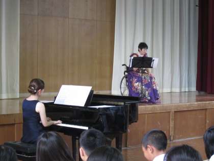 気管切開という声楽家にとっては大変きびしいことを受け入れ,そして声を取り戻す努力をしたお話を歌を交えて語ってくださいました。前向きに活動している青野さんの姿から,学ぶことがあったのではないでしょうか?