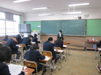 この調査は,3年生の現時点での皆さんの力を見る調査です。解答が返却されるときに,それぞれの弱点にアドバイスがついてきます。長い文章を読んで,そして自分で考えて文章で答えなければなりませんが,高校入試と同じです。弱点をこれから克服していくために,今の力で試してみましょう。