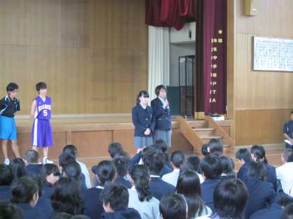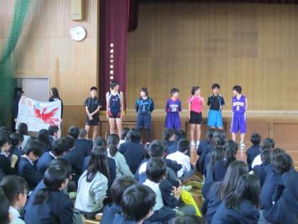 認証式後,春季総合体育大会の激励会が行われました。各部のキャプテンが,今大会の決意を語ってくれました。
