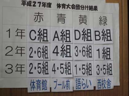 今日の朱雀タイムの最後は,体育大会の団分けの決定です。どこの学級が優勝するか?