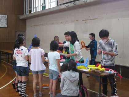 吹奏楽部の演奏,風船で動物づくり,パウチをかけてしおりを作成などなど。本年度は丸太町病院の方々が,健康のために座ったままでできる体操を教えてくださいっています。地域のみんながつながり,楽しめるひとときです。
