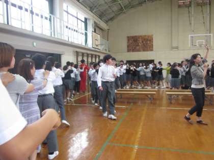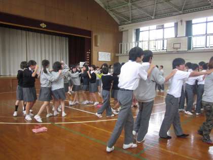 文化が異なると,いろいろなところに違いが見えてきます。その一例として,世界の国々の「ジャンケン」を教えていただきました。その「ジャンケン」のやり方で,どんどんと長い列ができています。楽しんでいますが,異なる文化に触れ,少しは他者を理解することができたでしょうか。