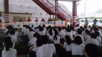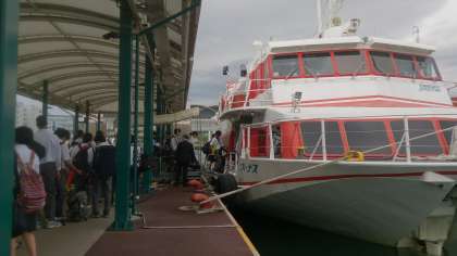 15:45発のジェットフォイルで博多港を出発。16:55に郷ノ浦港に到着しました。残念ながら雨での入島式となってしまいました。