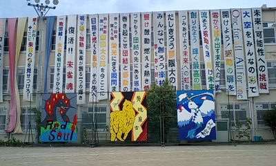 今年の応援パネルも完成し,無事に全ての準備が終了しました。今夜の天候がやや気になりますが,明日の当日…主役の生徒たちを待つのみです。