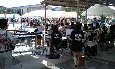 晴天に恵まれた9月19日(日),第8回の朱五区民ふれあい祭が朱雀中学校のグランドで行われました。朱雀中学校からは吹奏楽部が演奏を,生徒会中央委員会が「朱雀ギネスに挑戦」というブースを出して参加してくれました。