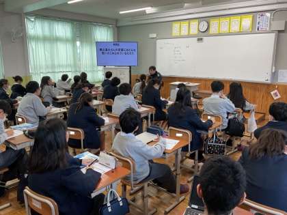 12月10日(水)1年生では人権学習を行っています。ほんとうの「バリアフリー」って何だろうという主題で学習を進めていました。自分の意見をまとめ班やクラスで共有していました。次回につながる学習となりました。