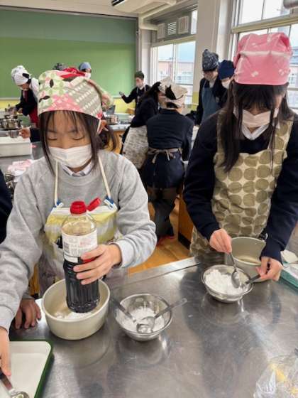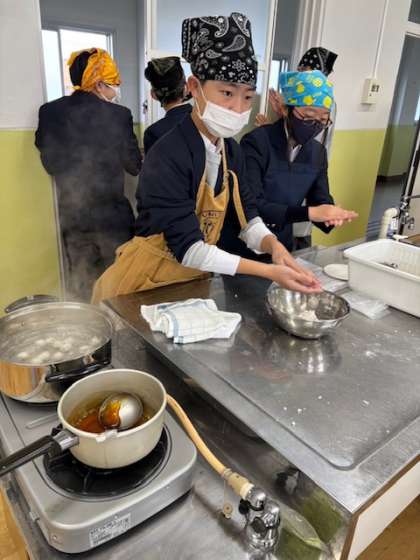 12月17日(水)3年3組の調理実習の様子です。みたらし団子を作りました。