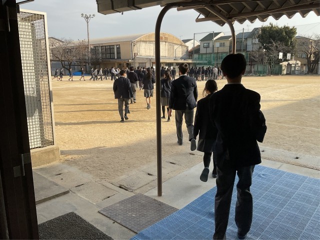 1月15日(木)避難訓練を行いました。地震についてです。今年に入ってからも日本の各地で地震が起こっており、被害が出ている場所もあります。いざというときにどのような行動をとればいいのか。教室でも映像を見ながら学習を行いました。
