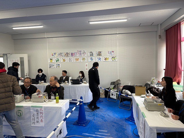 2月8日(日)衆議院議員選挙の投票所として朱雀中学校の音楽室が会場となっています。朝から降り出した雪の影響が心配されましたが、昼過ぎから人も多くなり、投票に足を運ばれています。