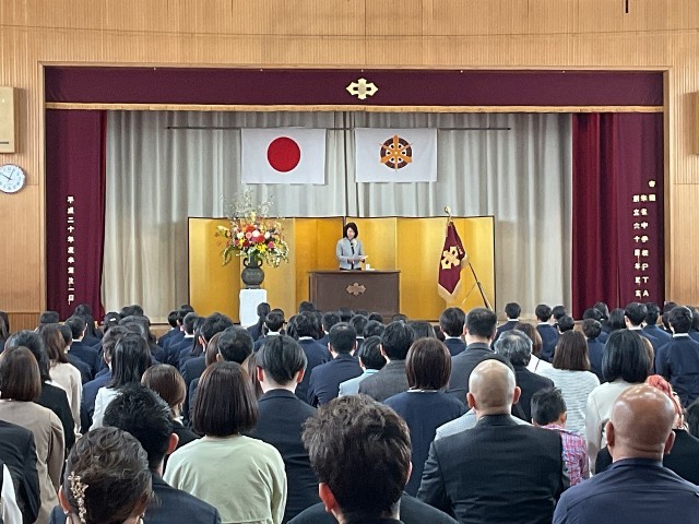 4月9日(木)令和8年度入学式を行いました。新しい制服を着た90名の1年生が入学しました。みなさんの入学を楽しみにしていました。今日からみなさんは朱雀中学校の仲間です。たくさんのことを学んでいっしょに成長していきましょう。明日から3学年がそろって中学校生活がスタートします。わからないことや困ったことがあれば、周りの友達や先生、先輩に聞いてください。きっと力になってくれると思います。保護者の皆様、お子たちのご入学おめでとうございます。教職員全員で目の前のお子たちを支え、寄り添い、見守っていきたいと思います。ご家庭と学校が協力してお子たちのことを考えていきたいと思っていますのでご理解、ご協力をお願いいたします。3年間よろしくお願いいたします。また、本日はたくさんのプリントをお配りしております。中を確認していただき期限内にご提出ください。