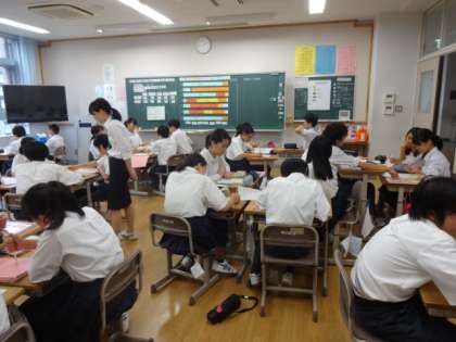 今日はまずトップバッターとして,技術・家庭科(家庭分野)の実習生の研究授業が行われました。緊張しながらもしっかりと指示を出し,グループ活動や発表を取り入れて授業を行っていました。