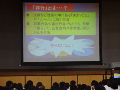 本日は教育委員会から講師の先生にお越しいただき,8年生で「非行防止教室」を実施しました。