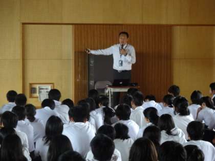 普段,当たり前のように使っている携帯電話やスマートフォン,コンピュータに潜む危険性について,携帯電話会社の方にお越しいただき,実例も交えて分かりやすくお話しいただきました。