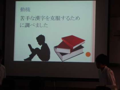 時事問題に関連した内容,調べたことをクイズ仕立てにして発表するなどスタイルは様々ですが,どの部員もしっかりとした態度で発表していました。