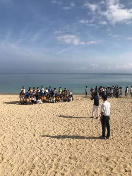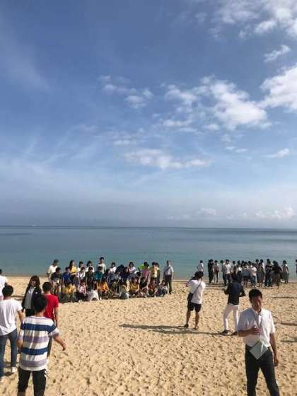 平和の取組としてクラスごとに人文字でメッセージを作っています。