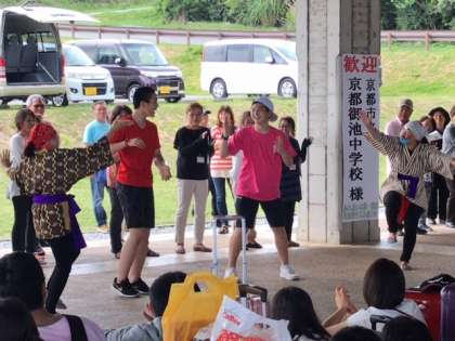 民泊でお世話になる南城市での入市式です。踊りでの歓迎です。