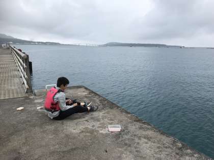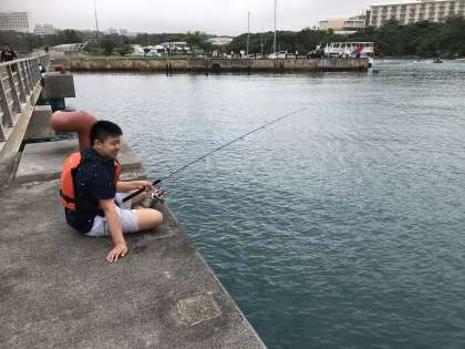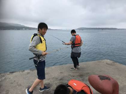 釣り体験の様子です。ハリセンボンが釣れたそうです。釣り糸を垂らしながら,時折遠くに見えるクジラやエイにも心を躍らせています。