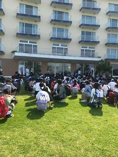 ホテルの退館式です。ホテルの方にお礼を言って,次の訪問先に移動します。