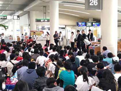 解団式と搭乗手続きの様子です。
