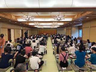 朝食の様子です。食べ終わった後は,座布団の片付けを率先してやってくれている生徒もいました。この後は,バスで移動して自然体験となります。
