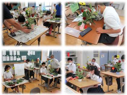 お花の先生は小学校にも行っておられて「長い子では9年間,教えさせてもらっていて,背を抜かされることもしばしばです。」と,そんなお話も聞かせていただきました。お花を通して,人のつながりも感じる時間となりましたね。