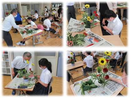 1組では,お花の先生をお迎えし,生け花学習を行いました。生け花学習は,これまでも毎年のように続けており,生徒たちはとても楽しみにしていました。
