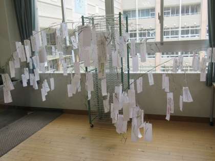 下の写真は七夕に願い事を書いたものですが…,あるある!修学旅行についてもお願いしていますね。