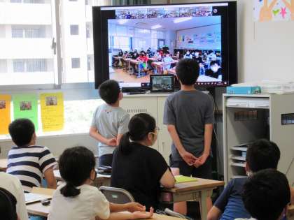 6年生では,毎年,総合的な学習の時間に講師の先生をお呼びして,伝統文化に触れる学習機会をもっています。今年は,なんと,3小学校が時期を同じくして取り組みました。今日はその成果をもち寄って,Zoomを利用した意見交流を行いました。