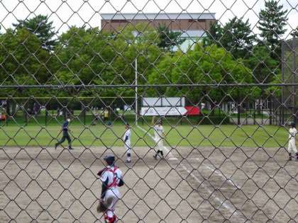 相手チームも意地をみせ,食らいつく攻撃で,3回裏にヒットで1点を返されます。ただ,後続を断ち,その後も抑え,大会規定により5回コールドゲームとなりました。