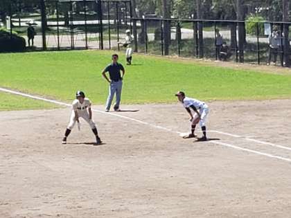 ライト前ポテンヒットと送球ミスで1点とられ,さらにヒットで2点目を許しました。