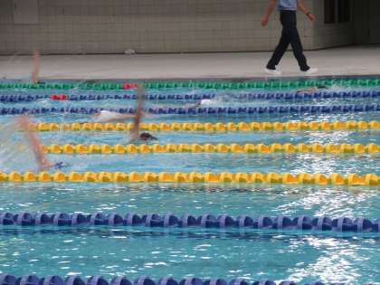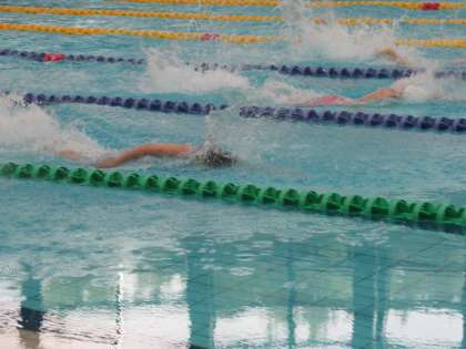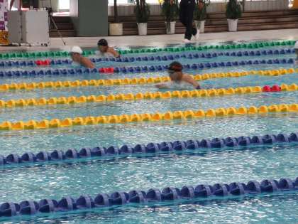1日めの今日は,それぞれ100m背泳ぎ,50m自由形,200m個人メドレーの種目に臨みました。