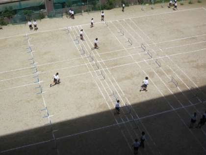 また,体育の授業は,ハードル走に取り組んでいる様子です。私の経験から,抜き足がうまくできず,膝を強打したことや「よ〜いドン!」で,ハードルを全部倒して走ったことを思い出します。