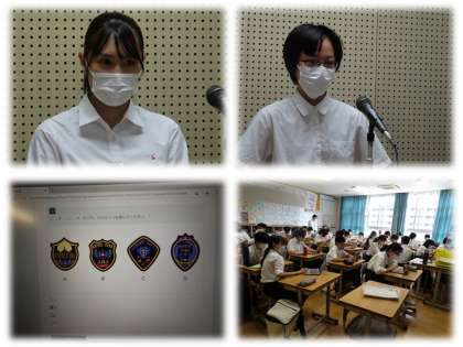 続いて,評議会議長のRさんからは,来年度の標準服のマイナーチェンジに伴うエンブレムの原案が決まったことを受け,今日は,原案4つの中からこれぞと思うデザインに投票することを説明してくれました。